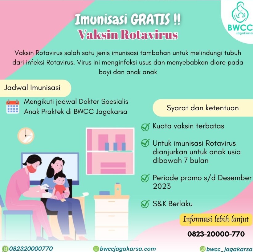 Vaksin rotavirus gratis untuk anak usia dibawah 7 bulan atau sesuai anjuran dari Dokter Spesialis Anak